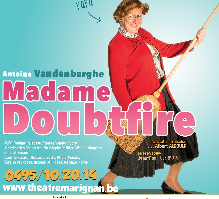 Reprise du grand succès de la troupe Cabaret 2000. Un pièce à la fois drôle, ponctuée par des moments de tendresse qui ravira le public familial. Alex est un  comédien qui rame, sa femme lassée de son côté immature demande le divorce . Pour voir ses enfants régulièrement  Alex invente un personnage : Madame Doubtfire, une femme de ménage que tout le monde va adorer.